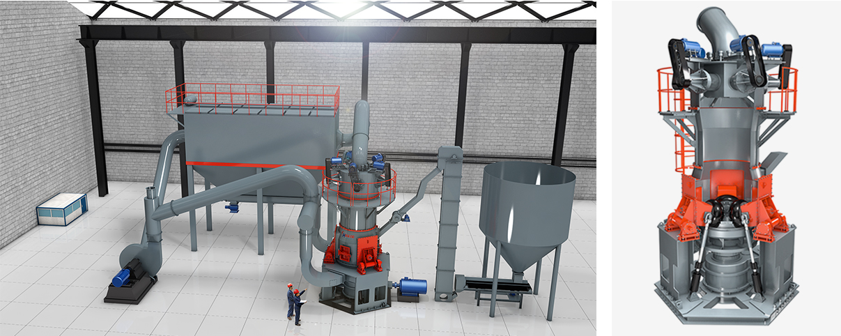 (4)立式磨粉磨系統:屬于碾壓粉碎,它在單位時間內產生的細粉量偏少。它的優點是采用液壓方式進行施壓于磨輥,產生的碾壓壓力很大,因此粉碎效果好,可用于粉碎硬度高的物料。它一般以用來生產1000目以下的產品,部分重鈣設備企業如桂林鴻程等在生產中對立式磨進行了改進,改進型的超細立磨可直接生產600目一2500目產品。隨著立式磨干法粉磨與精細分級技術在重鈣行業得到推廣應用,近年來超細立磨工藝技術成為重鈣加工企業的理想技術。其既滿足了重鈣產業規模化、精細化加工的要求,又符合國家節能減排政策的要求,該工藝技術將有助于深化重鈣產業裝備技術升級。