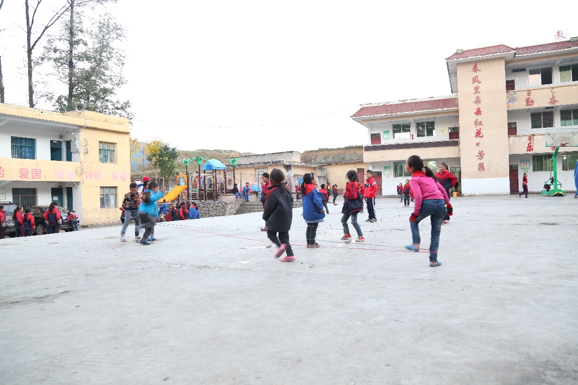 離開學校前,筆者又瞅了瞅了教學樓上刻著的“陽光下棵棵幼苗長成才,春風里朵朵紅花吐芳菲”的紅色行書大字。操場和走廊上的孩子,揮著手,大聲和我們道別,臉上的高原紅,映襯著更加燦爛的笑容。
