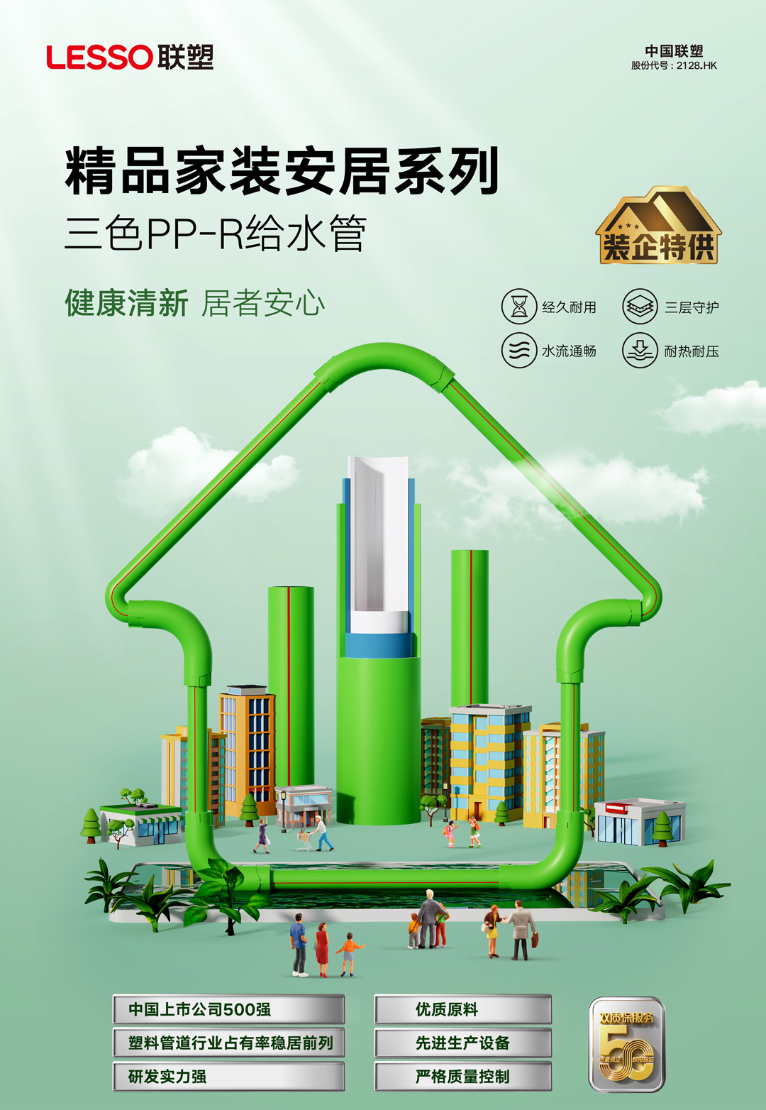 3. 環保健康,安全用水/采用綠色環保原材料,衛生性能符合國標要求,安全安心;